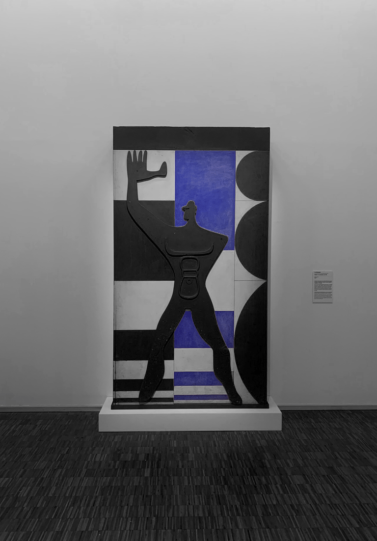 The Modular, Le Corbusier's idea of a "perfect" man for design proportions, Exhibited at Centre Pompidou, Paris, France